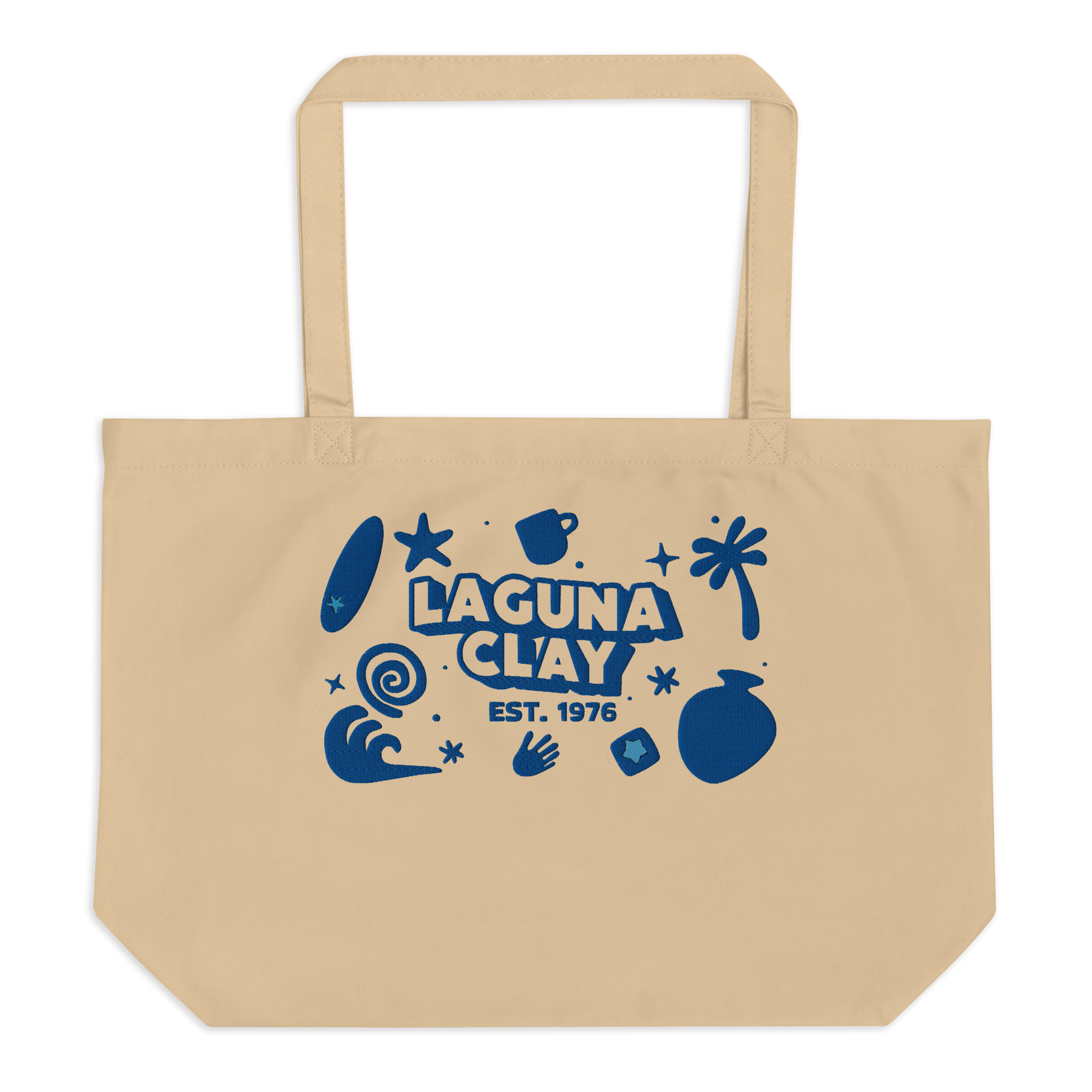 Laguna Tote Bag - Oyster w/ Blue Embroidery